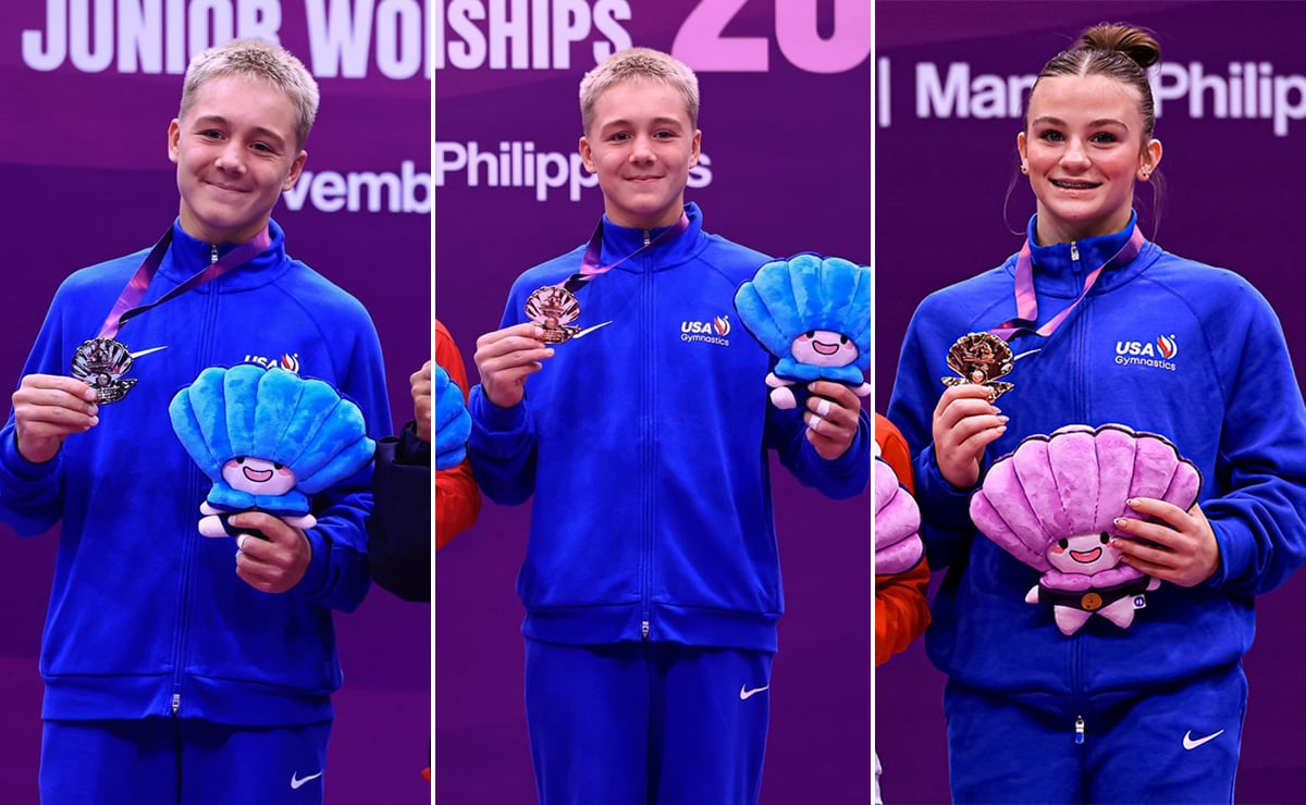 Danila Leykin collected silver and bronze medals, and Caroline Moreau won her third bronze of the competition Monday to conclude the 2025 FIG Junior Artistic World Championships.