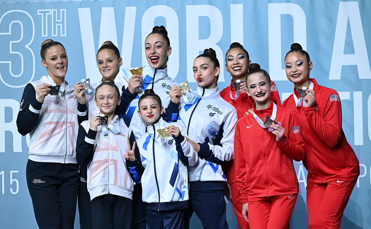 GUIMARAES, Portugal (September 15, 2024) – American acrobatic gymnasts claimed eight medals, half of them gold, on the final day of the 2024 Acro World Age Group Competitions and Junior World Championships in Guimaraes.