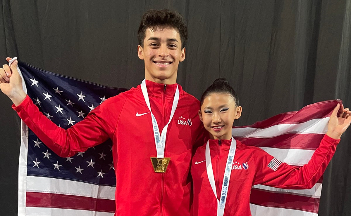Six of the country’s medals came from the action at the World Age Group Competitions, with the honors being split evenly between the two age groups. Each American that advanced to Junior Worlds also won gold in the 13-19 age group, as the Ossolodkovs won men’s pair gold with a 29.250; Wong and Castro put up a 28.540 to win the mixed pair title; and Padios and Noble also took women’s pair gold with a 28.250.