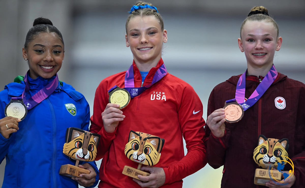 ASUNCIÓN, Paraguay (August 21, 2025) – American juniors Charleigh Bullock (Spotsylvania, Va./Capital Gymnastics National Training Center), Addalye VanGrinsven (Champlin, Minn./Pacific Reign Gymnastics), Jason Hao (Clarksville, Md./Capital Gymnastics National Training Center) and Miles Nixon (Simi Valley, Calif./Gymnastics Olympica USA) all claimed apparatus medals Thursday at the 2025 Junior Pan American Games.