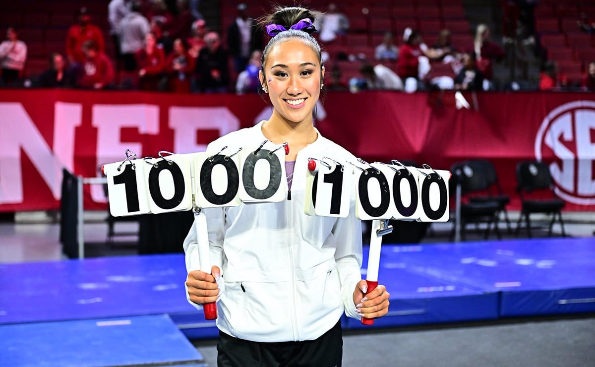 FAYETTEVILLE, Ark. – After 8,442 days and 24 competition seasons later, Arkansas gymnastics finally saw perfection rewarded in its scores as senior Morgan Price earned the first 10 in program history, on vault, in the No. 7 Gymbacks’ 197.125-197.125 tie against No. 24 Kentucky on Friday.