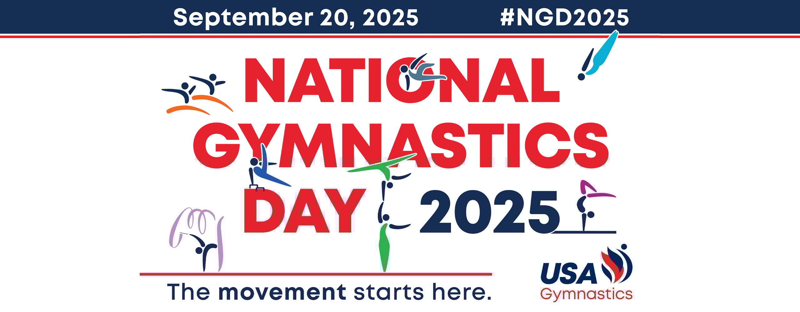 On September 20, 2025, we encourage all gymnasts, coaches, gymnastics clubs, and fans to join us to celebrate National Gymnastics Day!