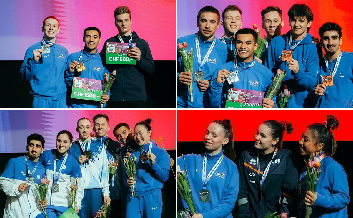 U.S. trampoline athletes won six medals, including two 1-2 finishes, in double mini and synchronized trampoline competition at the 2026 Alkmaar World Cup over the weekend in the Netherlands.